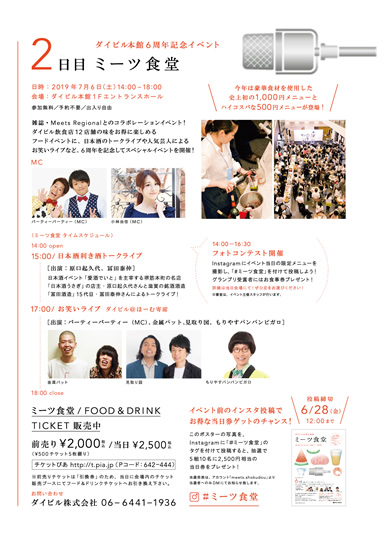 ¥500×5枚綴り¥2000(当日チケット\2500)にて、「Meets食堂」参加各店の店頭